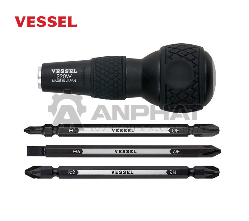 - Bộ Tô vít cán tròn có thể thay thế đầu vặn vít No.220W-3 (bao gồm sẵn đầu vặn vít)
