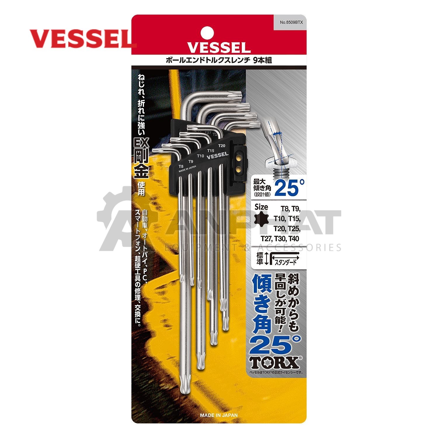 - Gồm 9 chi tiết (Size từ T8 đến T40mm) với độ dài ngắn khác nhau, phù hợp với nhiều vị trí tháo/siết.