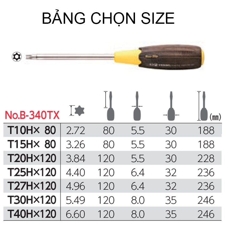 Đặc điểm nổi bật của tô vít hoa thị cán gỗ No.B-340TX:
