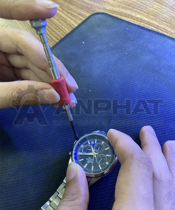 - Bàn tay tỳ vào đỉnh tua vít sửa đồng hồ No.TD-51 và xoay nhẹ nhàng bằng ngón tay, đạt độ chính xác cao và không gây mỏi cho người sử dụng.